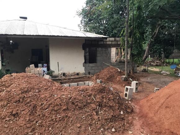 The kitchen is being enlarged, a shower room and toilet added, Elizabeth gets a new bedroom and we will have a screened-in verandah adjoining our patio. Hopefully this will help us dry clothes during rainy reason too.